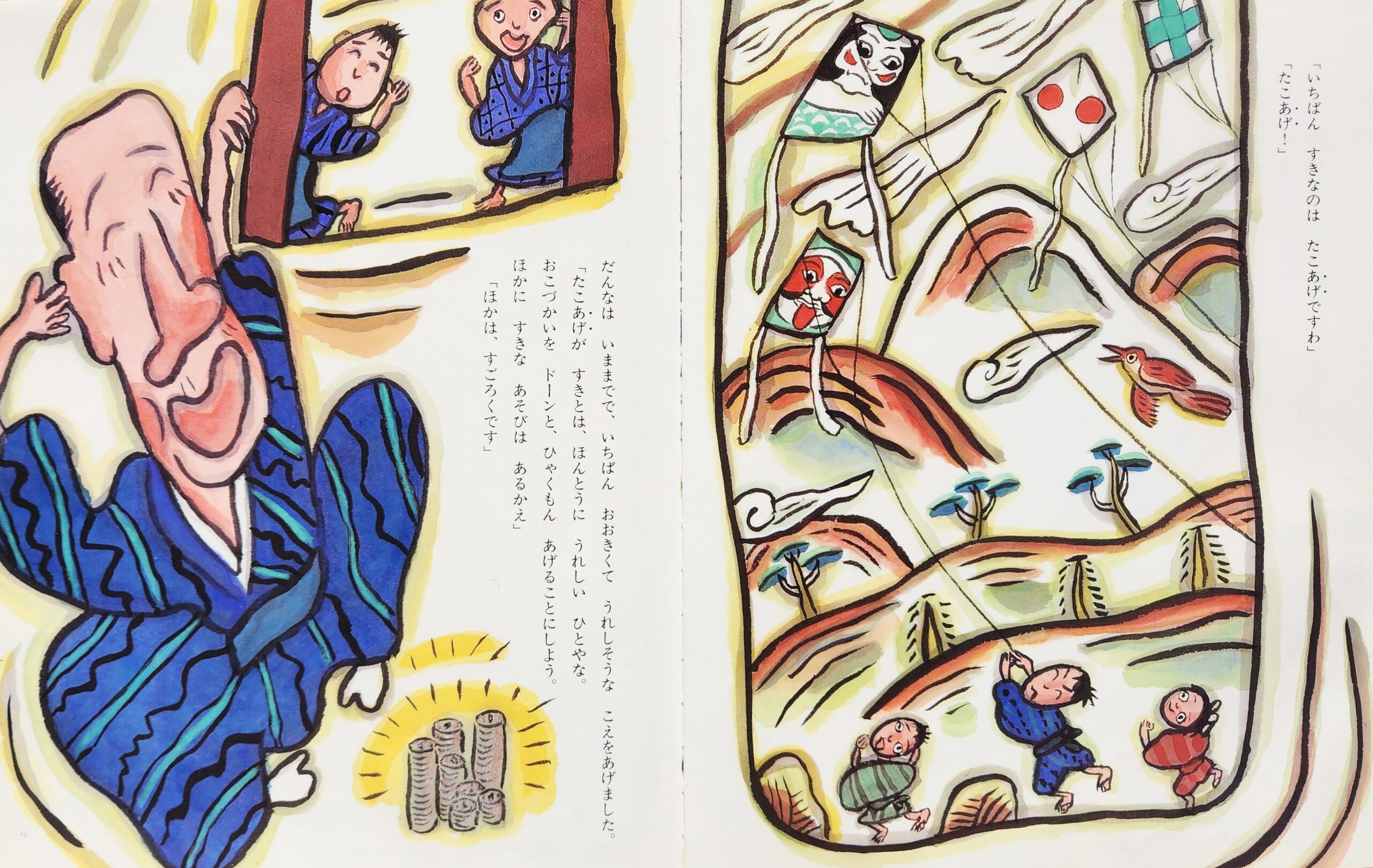 「五十文 おこづかいを あげる。どんな遊びが すきや」