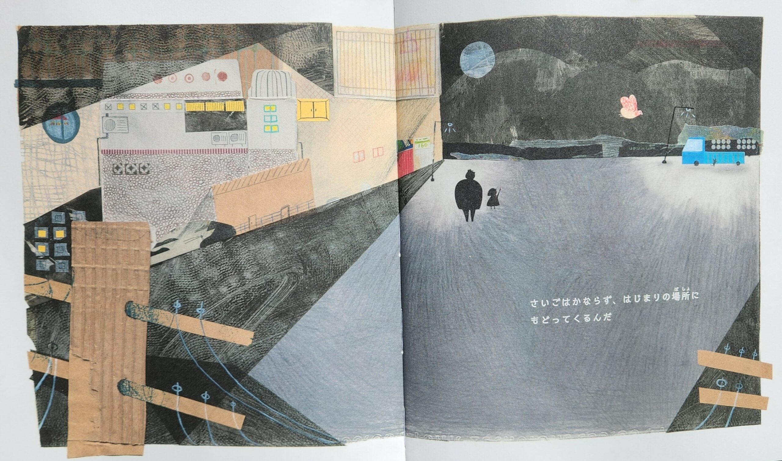 コラージュの技法で描かれた絵です。多様な素材を組み合わせるコラージュが、人物や街並みのまとまりを表現しています。台湾からきた絵本。訳者は、「ハナミズキ」で有名な一青窈さんです。